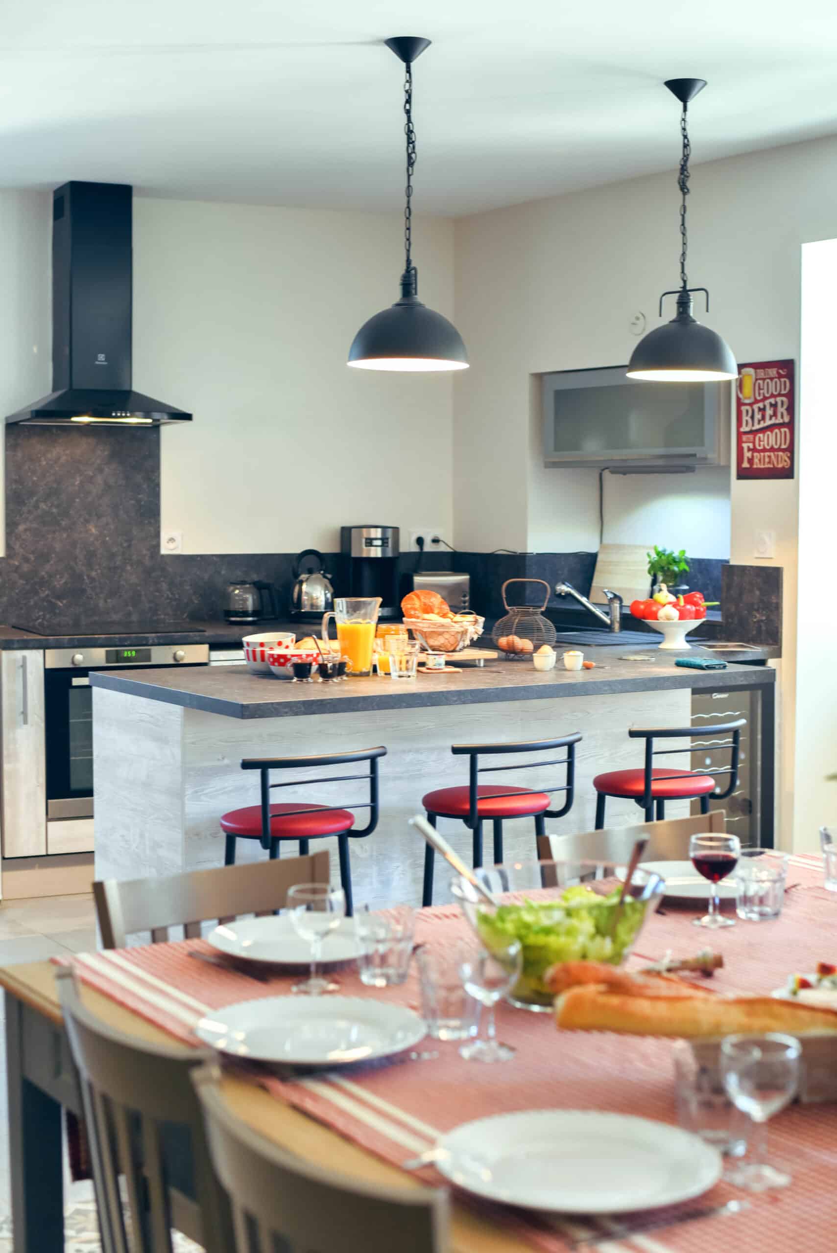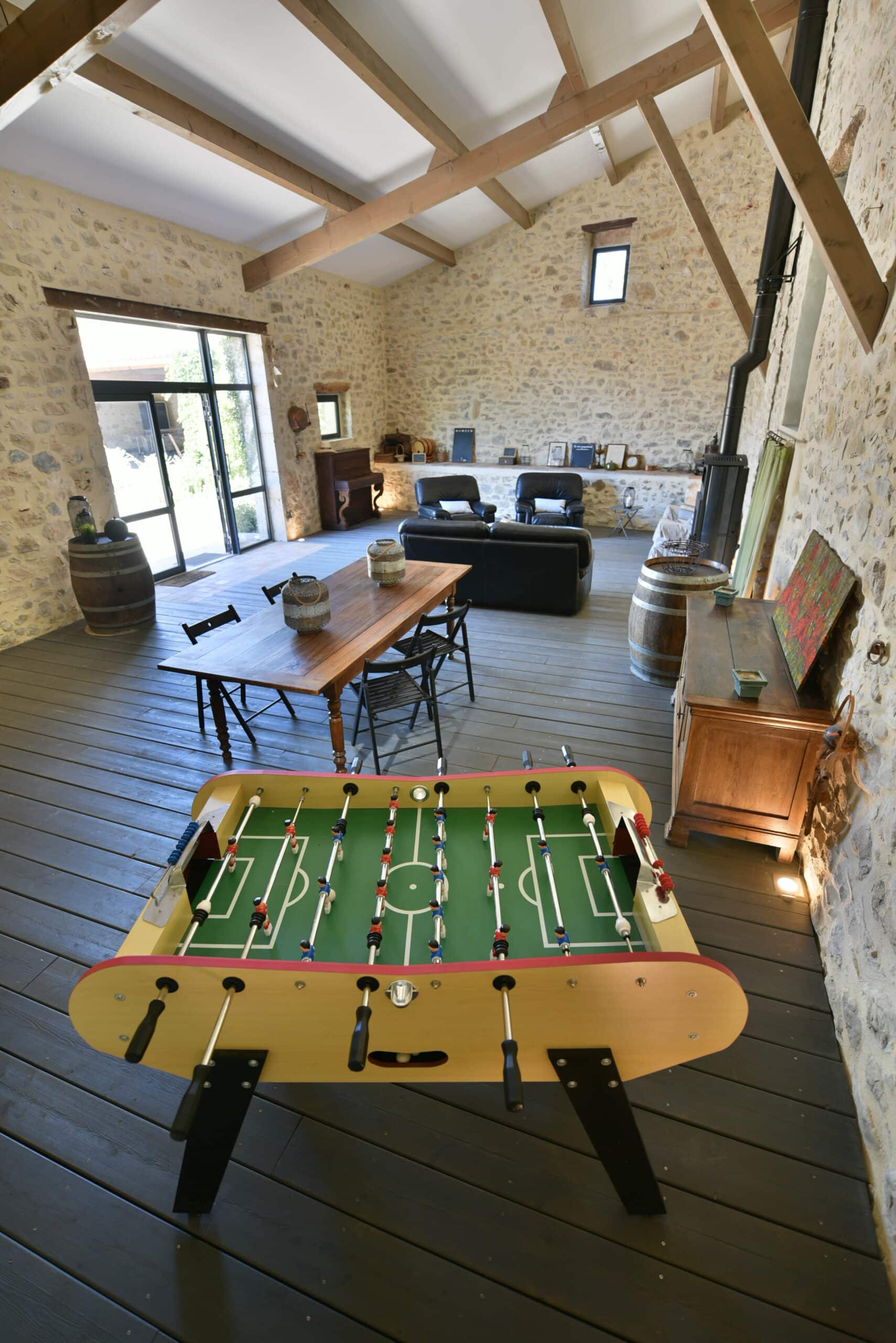 Le gîte dispose d’un vaste espace extérieur comprenant un terrain de pétanque, des espaces abrités pour se détendre et des installations telles que des terrains de sport et une table de ping-pong. À l’intérieur, vous serez séduit par la décoration chaleureuse et authentique, pensée pour créer une ambiance conviviale. Parking gratuit et WIFI inclus viennent compléter votre confort.