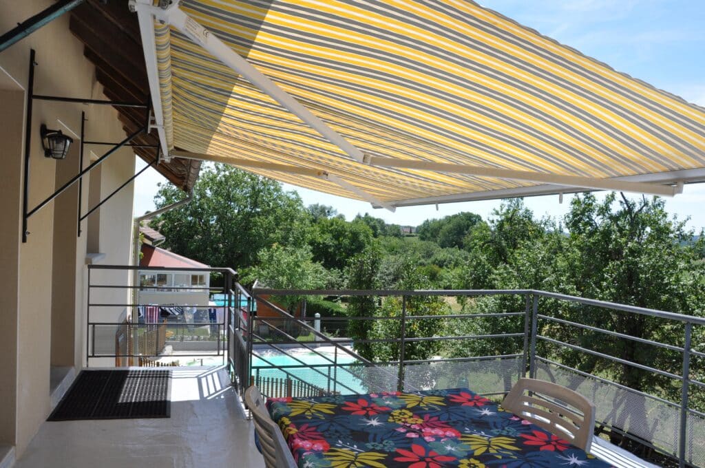 Profitez d’une **large terrasse orientée plein ouest**, parfaite pour admirer les couchers de soleil tout en partageant des moments conviviaux. Sans aucun vis-à-vis, la vue panoramique sur la nature environnante et le bassin de baignade vous garantit un dépaysement total.