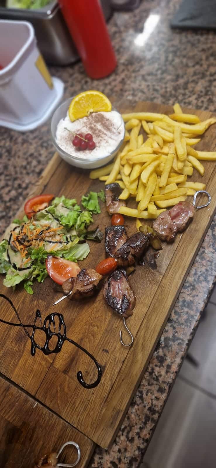Découvrez un large choix de mets savoureux : des pizzas maison, des gaufres gourmandes, des coupes glacées généreuses ou encore des plats traditionnels soigneusement préparés. Envie d'une pause rafraîchissante ? Profitez d'une boisson fraîche tout en admirant le paysage environnant. Chaque plat est conçu pour ravir vos papilles et offrir une expérience culinaire mémorable.
